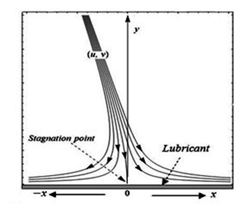 represents the boundary layer displacement produced on the lubricated surface. It is worth to mention that the flow field (5) displays the combined effects of both the horizontal shear flow and the orthogonal stagnation–point flow.