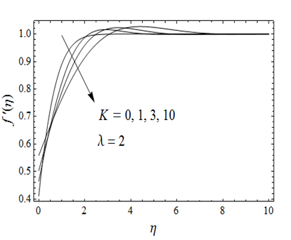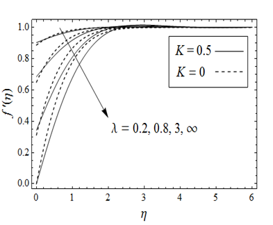- The skin friction coefficient increases by increasing and decreases by increasing k. However boundary layer displacement is increased by enhancing