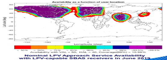 Figure 13 World SBAS coverage (African SBAS not operational except trial facilitated by Nigerian Satellite; NIGCOMSAT-1R).