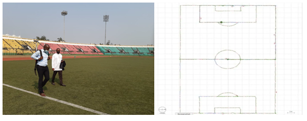 We also successfully demonstrated the additional services provided by SBAS on July 7 and 8, 2021 in Brazzaville, Congo in non-aviation sector specifically at the National Stadium Alphonse Massamba-Debat employing a dual-frequency GNSS chipset receiving GPS and Galileo signals as Navigation Overlay Service (NOS) via NIGCOMSAT-1R Navigation Payload as illustrated in Figure 3. The aim was to accelerate the development of additional satellite services for Africa and the Indian Ocean to deliver precise point positioning (PPP) and danger warnings for a wide range of applications in Africa. The transmission of GNSS (Global Navigation Satellite System) corrections based on PPS technology and also using the SBAS signal.18–22 This approach showed the system’s ability to achieve positioning accuracy to within centimeters across the entire African continent. A world first within the continent for broad range of application in various sectors, including precision agriculture, land and maritime transport, rail safety, drone navigation, mapping and surveying etc utilizing SBAS. The demonstration was realized after we commenced a Satellite-Based Augmentation System (SBAS) broadcast signal over Africa and the Indian Ocean (AFI) region on Thursday, 10th September, 2020 with a successful test bed Signal-in Space broadcasted through NIGCOMSAT-1R SBAS payload globally over Africa, Indian Ocean, West Australian coast and Europe with support from Europe for Francophone countries in Africa.