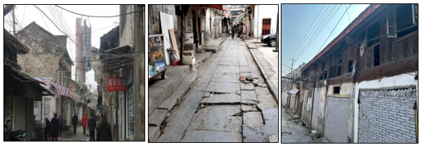Historical buildings are mostly made of brick and wood. Due to the humid climate in Jingzhou, wooden structures have seriously deteriorated, and the strength of the wooden frame is insufficient.9 The interiors of these buildings are dark and damp, with poor ventilation and lighting. The living spaces are poorly lit, the rooms are small, and there are no separate kitchen or bathroom facilities. The public spaces in the courtyards are heavily occupied, the staircases are too narrow, the courtyard spaces are quite dark, and there is a lack of social interaction spaces. Hygiene conditions and safety management are difficult. Due to the loss of population in the area, many historical buildings have severe quality issues, with some walls even cracking and becoming dangerous. A large number of houses have become unsafe, and due to years of neglect, the protection and renewal of the area are urgent.10