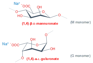 GERD (gastroesophageal reflux disease/acid reflux disease) is a digestive disorder, which is caused from the continuous exposure of the esophagus to acidic reflux from the stomach. The reflux of gastric acid leads to irritation, inflammation of esophageal linings, and many further complications. Treatment for GERD is generally targeted for gastric acid neutralization and suppression of gastric acid production and / or secretion. However, another key approach to alleviate the condition is to minimize the exposure of esophagus to acidic refluxate. Raft-forming anti-reflux formulations are one approach for such a treatment. When such formulations are getting in contact with the acid media in the stomach, a swollen gel layer is formed, is floating up to the upper part of the stomach and acts there as physical barrier to prevent the reflux of the stomach content back into the esophagus. As the swollen gel barrier floats over the stomach contents like a raft, these formulations are referred to “Raft-forming anti-reflux formulations”. For such treatments the hydrocolloid within the formulation acts as an active pharmaceutical ingredient (API), if the gel formation capacity is sufficient. Most of such anti-reflux formulations are using alginates as such API.1-8 Alginates are derived from brown seaweed and belongs to the family of linear co-polymers containing 1,4-β-D-mannuronic (M) and 1,4-α-L-guluronic (G) acids units. These structural elements are shown in Figure 1 and based on the acid groups in the polysaccharide backbone these products are mainly commercially available as sodium salts. The performance of these hydrocolloids is strongly dependent on the G- and M- content as well as the order of those structural elements in the polymer backbone. These architectures in the polymer chains can substantially vary between alginates from different seaweeds and / or harvested from locations around the globe.9-11