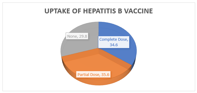 Limitations of the study: participants were not screened for HBV immunoglobulin level to determine their vaccination status nor was any evidence of vaccination demanded. The study relied sorely on the participant’s ability to recollect their vaccination history.
