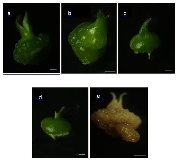 Table 1 Effect of different LED light spectra on seed germination percentage, fresh mass (g), number of leaf primordia, and number of oxidized protocorms of Cattleya crispa Lindl after 70 days of in vitro culture