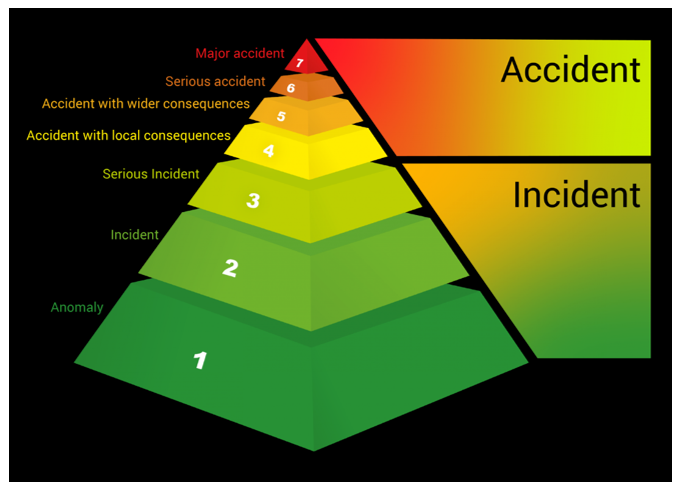 Figure 1 The International Nuclear and Radiological Event Scale (https://www.iaea.org/resources/databases/international-nuclear-and-radiological-event-scale)6.
