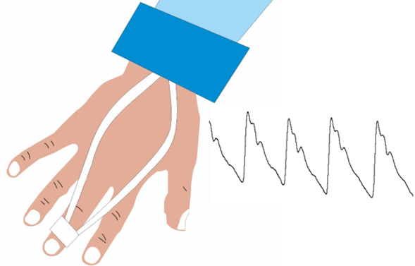 Continuous analysis of systemic blood pressure using the clamping method of the radial artery by means of tonometry, as offered by ClearSight (Edwards LifeSciences, USA) CNAP (CNSystems, Austria) as shown in Figure 8. method derived from the pressure in the artery of the finger, analyzing the wave of the pulse contour and supported by plethysmography, by means of an electromechanical sensor, derived in an algorithm, obtaining different variables both dynamic and static (PA, VVS, VPP, GC, IC, RVS) without the need for invasion or taking an arterial line.34,35 Its main limitations are: it is a non-calibrated method, it is necessary to use the disposable that maintains an average life of 8 hours, edema, peripheral vasoconstriction, hypothermia, hypoxia, among other causes limit its reading, in the perioperative context it has been demonstrated good results, however studies conducted in cardiac surgery and ICU have shown unsatisfactory results. Plethysmographic Variability Index This principle starts from the representation of the pulse oximetry curve with the previously mentioned bases of changes in hemodynamics during inspiration and expiration, processing it in a filter for reading and interpretation based on each supplier's own algorithms. This is the principle with which that Masimo's house bases its hemodynamic variables. The information is extracted and processed by creating 2 indices, the Perfusion Index (IP) and the Plethysmographic Variability Index (IVP), both are considered dynamic variables and have the physiological basis of the VVS and PPV with a cutoff point for the provider house of 10-15%,36 to advise us on goal-driven management (37). They are available from pulse oximeters that offer these variables and more advanced monitors with different variables not only hemodynamic, when placed on fingers, their limitations are similar to clamping volume: hypothermia, edema, peripheral vasoconstriction, use of disposable (except for Mightysat which is a pulse oximeter with dynamic variables of the house Masimo) and the limitations of the principles of a VVS and a VPP, poor results in Cardiac Surgery and in the Intensive Care Unit.