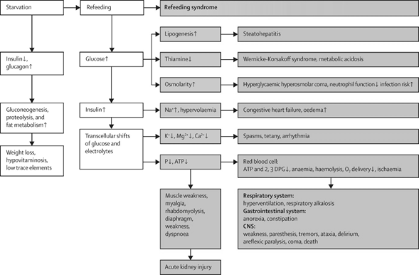 Figure 3 A final summary of critical clinical and biochemical events during prolonged fasting and Refeeding Syndrome.