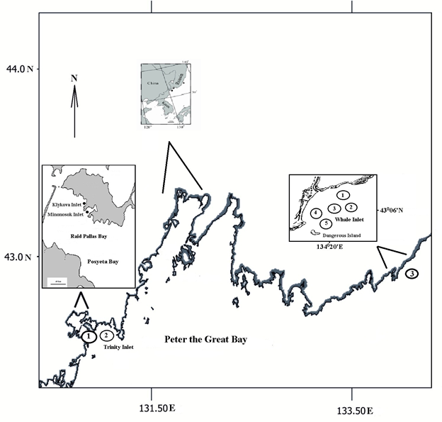 To research the population dynamic of N. heyseana, M. yessoensis, M. trossulus and Asterias amurensis (A. amurensis) the contents scallop collectors of Japanese construction and developed by us collector-cages in Minonosok Inlet and in Klykova Inlet of Posyeta Bay (42º61ʼN, 130º85ʼE) were studied during 38 years (1977 – 2014) (Figure 1).