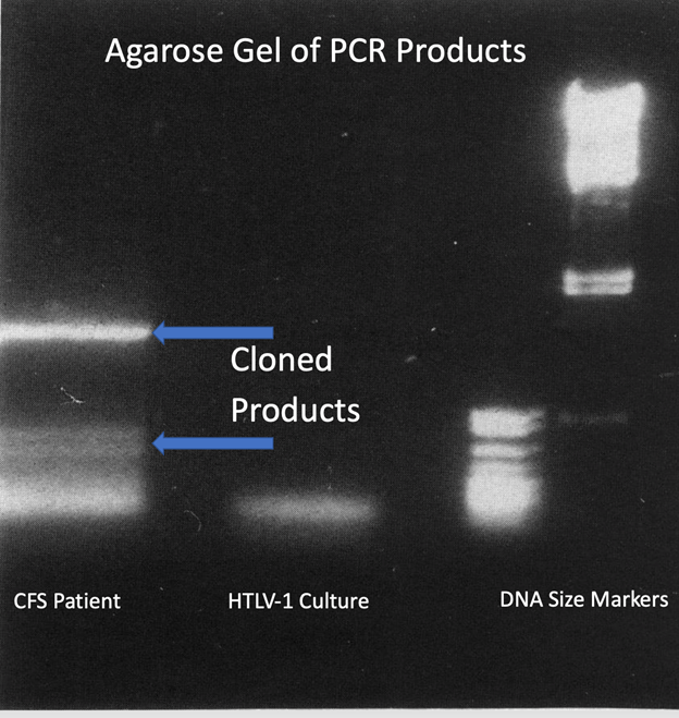 Two other developments coincided with the Lake Tahoe outbreak of CFS. One was the development in 1986 of a highly sensitive molecular diagnostic assay procedure.10 It is based on the ability to selectively amplify small segments of known DNA sequences. The assay soon became known as the polymerase chain reaction (PCR). It required knowledge of the DNA sequences that flanked the segment of DNA that was intended to be amplified. PCR oligonucleotide primers that will selectively bind (hybridize) to these flanking regions are then used to exponentially amplify the intervening segment of DNA. The second development was the identification of human herpes virus-6 (HHV-6) that was distinct from EBV and other known human herpes viruses.11 I chose to undertake the logical inquiry of using the PCR assay to test CFS patients for active infection with HHV-6. With very few exceptions, specific testing for HHV-6 infection in CFS patients under the medical care of Dr. Jay Goldstein,12 a prominent clinician who was treating CFS patients, did not indicate an active ongoing HHV-6 infection. There were some weak positive results when I performed the PCR assays under less stringent conditions. This approach to performing the PCR assay can enable initial gene amplification even with only partial binding of the PCR primers to regions of the virus DNA. Additional primers were tried including a set that would readily amplify segments of all known human herpesviruses. These primers yielded discernable positive PCR results in many tested CFS patients.13-15 Strikingly positive results were seen in tested blood and cerebrospinal fluid (CSF) samples from patients with more severe neurological illnesses. A positive result was also obtained on tissue from a stereotactic brain biopsy. The biopsy showed no inflammation despite the positive PCR. It did, however, show numerous foamy vacuolated cells suggestive of a possible spumavirus infection.16 Spumaviruses differ from simple retroviruses in having sets of genes between the envelop coding gene and the right sided long terminal repeat (LTR) sequences (bel genes).17 Human T lymphotropic viruses (HTLV) also have accessory genes in this region, including the tax gene.18 Primers for the tax genes of HTLV-1 and HTLV-2 were, therefore, also used in continuing PCR studies on blood samples from CFS patients. Variable but clearly positive PCR were obtained in several of the tested CFS patients.