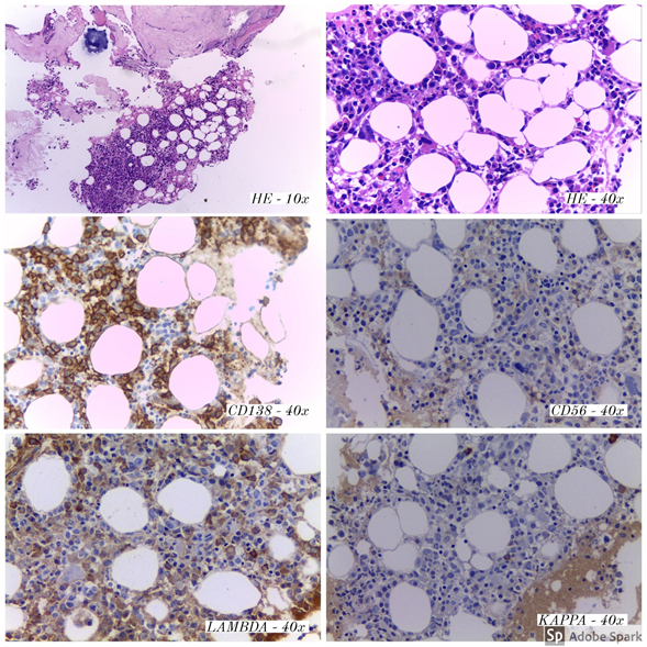 In this patient, a bone marrow study was carried out that showed infiltration by 15.7% of plasma cells with pathological IgG/Lambda immunophenotype, which, associated with the presence of renal failure, hypercalcemia, and anemia, allowed to establish the diagnosis of Multiple Myeloma.