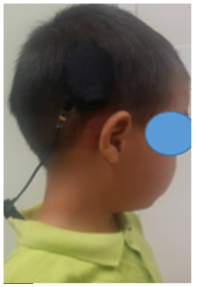The average duration of hospitalization was 48 hours. Sternvers radiography confirmed the correct placement of the cochlear implant in all patients (Figure 3). Postoperative recovery was uncomplicated. The first adjustment or activation of the cochlear implant was performed one month after surgery (Figures 1 & 2). Speech therapy rehabilitation was regular, with an average of 2 sessions per week. The settings were regularly adjusted and modified thereafter according to the progress in speech therapy rehabilitation (at 1, 2, or 3 months).