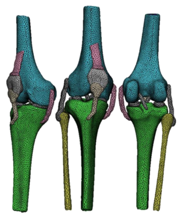 Biomodeling is the design of digital models of the human body, which are used as medical support for the diagnosis and treatment of various conditions, such as malformations1 or degenerative diseases,2 but also to study the behavior in a specific sector of the population.3 The knee is a subject of study because of all the applications where it is used, considering as an example the model of a knee subjected to an external load acting as a crash during a motorcycle race.4 These models are generated from superimposed images, such as those obtained from imaging studies such as magnetic resonance imaging, computed tomography, and ultrasound.5
