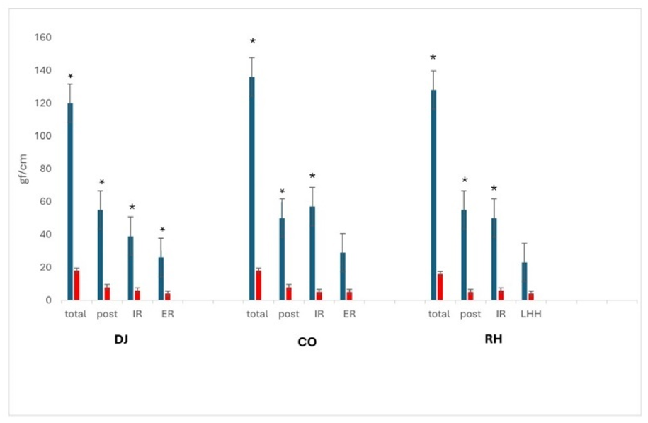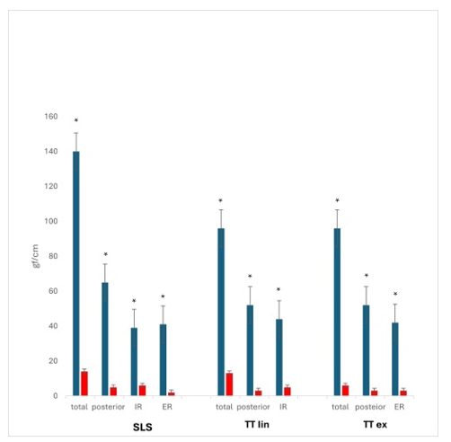 Passive stabilization test: During the two passive tests the LT and PS wearing the novel dynamic spring brace resulted in a significant increase in posterior stabilization force. Significantly (p<0.01) compared to static. While during the PS test wearing the dynamic brace result significant increase (p<0.01) in IR force compared to static (Figure 2).
