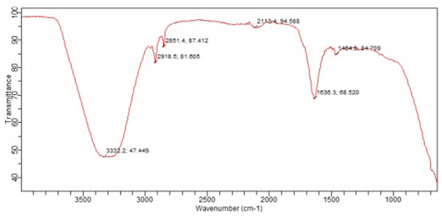 FTIR findings: Figure 2 and 3 above present the functional groups in the lotion cream are revealed by the study's FTIR analysis. Ether, phenolic, and aldehyde groups are commonly identified in cosmetic formulations. Crucially, the presence of an extra functional group in the medicated cream suggests that adding turmeric and aloe vera improves both bioactivity and aesthetic qualities.17 Similar investigations have confirmed the incorporation of botanical extracts into creams using FTIR spectroscopy; these extra peaks are indicators of enhanced antioxidant qualities and general product stability.10,18