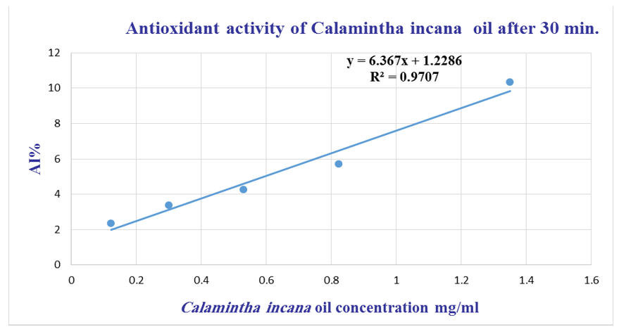 The AI% values were plotted against the respective concentrations to determine the antioxidant efficiency of both oil sample and BHT.