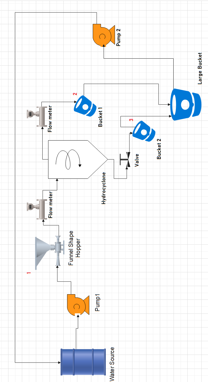 Due to the experimental constraints of having the test results independent from one another, the operation of the system was halted once the mixture of particles had gone through the hydrocyclone. This also allowed for the monitoring of clogged particles’ presence in the apparatus so that they can be removed to ensure subsequent experiments were carried out with similar and consistent parameters(Figure 3-6).