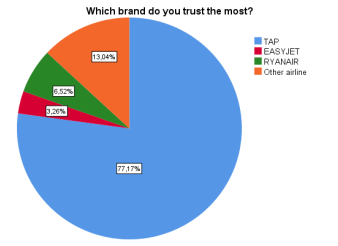 According to Table 5 and in relation to the companies under study, when the word "trust" is pronounced in the air transport industry, the TAP brand is always associated in a very positive way. The total value of 76.7% is very significant, namely in the use of check-in applications (54%), flight reservation (46%) and flight consultation (53.4%). Obviously, trust in the brand influences the services to be used.