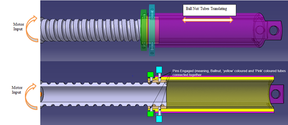 When pins are popped out, the ball nut, deploy tube and stow tube are free to slide independently. It is |