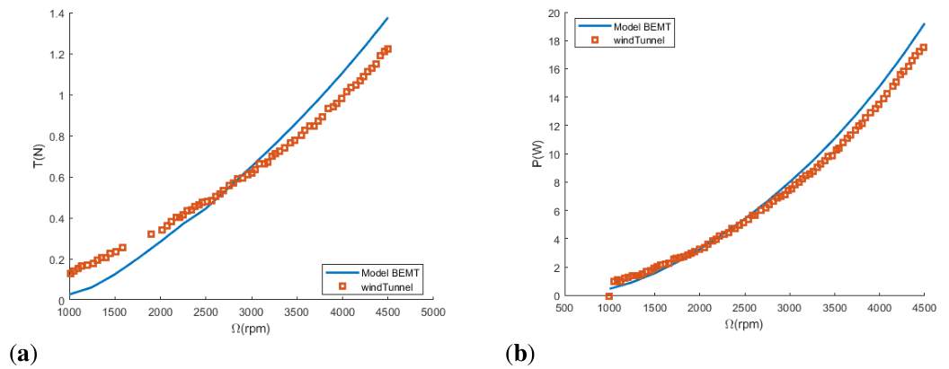 Additionally, because of the tip and hub losses, the equation 5 is coupled. Hence, the problem must be solved using an iterative procedure as it is described in.1 Apart from that, the model can compute the required pilot input to provide a specific thrust or just to compute the thrust generated for a fixed configuration. The pilot input is typically the collective pitch but it was also considered the rotational speed (Ω), which is used for drones. The computation is performed using a numerical solution by Newton-Raphson with MATLAB fsolve function.