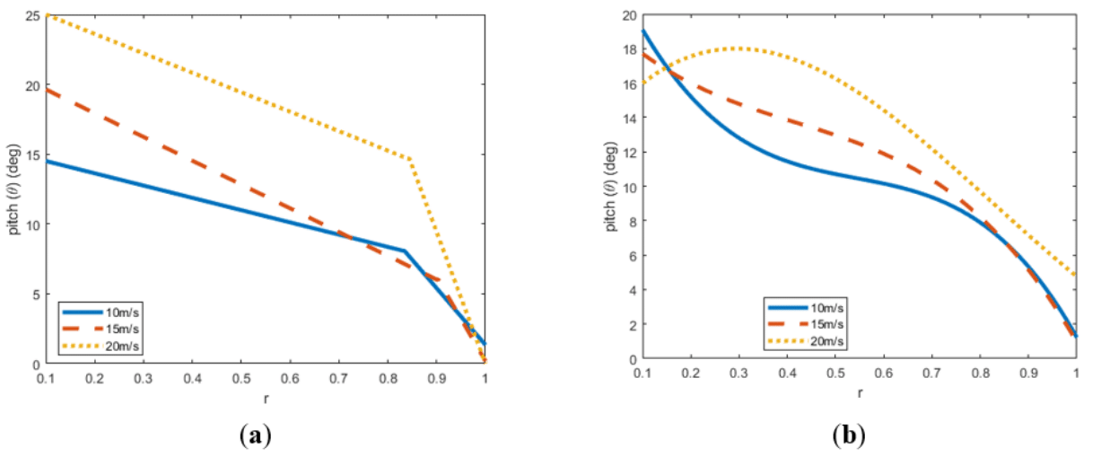 would be the impact on the thickness ratio of the airfoils. Optimizations predicted power reductions of 3−4% for chord, 7−11% for twist, and up to 17% for combined distributions.