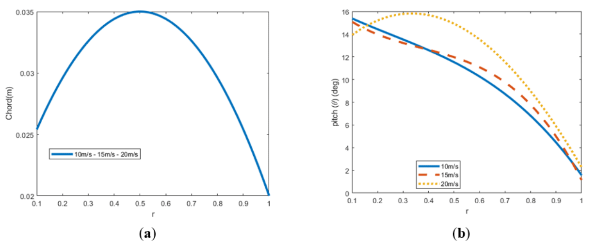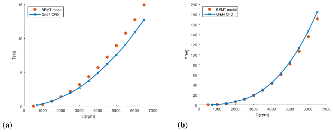 Finally, differential expressions of thrust, torque and power are obtained using the number of blades (b) and the rotational speed (Ω).