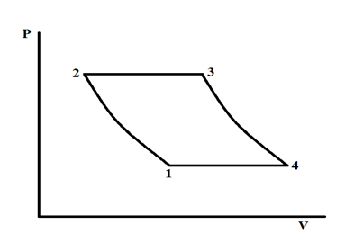 The ideal Ericsson cycle is used to estimate the efficiency of the Ericsson engine. The schematics of the Pressure–Volume (P-V) diagram of the ideal Ericsson cycle is shown in Figure 5. The cycle includes four processes: 1à2 isothermal compression, 2à3 constant pressure heat addition, 3à4 isothermal expansion, and 4à1 constant pressure heat rejection.