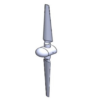 Designer for the original real configuration: The work briefly presented modeling and computational testing of the structure of a blade, made of synthetic plastic resin, for a small wind turbine. The 3D molding took into account aerodynamic aspects to enhance the conversion of kinetic wind activity into electrical activity.