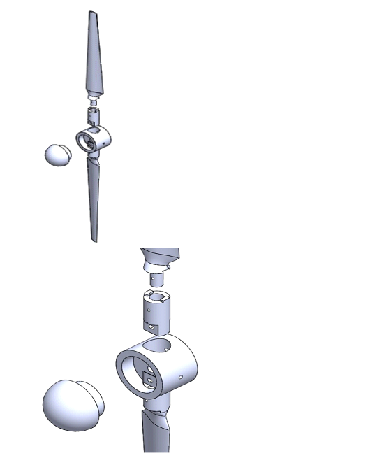 The blades were assembled with the hub using 2 2 mm screws that were inserted into the blades (1 cm). The hub was connected to the axle via a threaded bar.