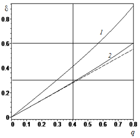 correspond to curves 2 and 3. It is seen that with increasing transverse stress field not taken into account by the linear theory of elasticity, the concentration of the deformation energy potential increases and exceeds the corresponding values for the Neo-Hooke potential. This may be important, since there are experimental data31 that the destruction of rubber products does not begin in the zones of maximum stresses, but in the zones of maximum values of the deformation energy potential.
