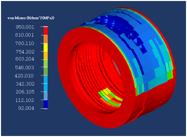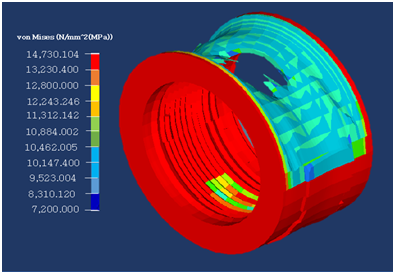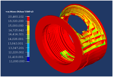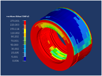 In this case, severe loading condition of the aircraft during landing may cause the aircraft tire to deflect, and this deflection depending on its severity may build up high stresses and cracks on the tire. However, this can subject the tire to intensive wear, distortion and tear effect if the overdamping frequency is continuous or if the vertically applied load in terms of the aircraft weight is excessive.14 The distortion can be determined using von-mises theory which helps in predicting yielding of a material when subjected to critical loading conditions. The yielding criteria for von-mises stress can be expressed by the yield stress relationship in equation 14;