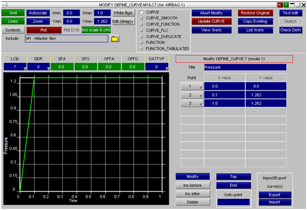 As shown in Figure 10, the final pressure of the tyre was updated from 1.289 to 1.262 tonnes per cubic millimetre. The tyre is inflated gradually from 0 to 1.262 tonnes per cubic millimetre within 0.1second to help reduce the computational time of the whole model. The pressure is thereafter maintained from that point to ensure that the pressure of the tyre at inflation and after inflation remains constant. At constant pressure the tyre is expected to impact the rigid surface. The final pressure of the simulation of the model after all corrections have been made to the model obtained from previous studies gave a steady increase from 0 till it reaches 1.262 tonnes per cubic millimetre and then remained steady throughout the simulation. The various energy plots for the entire model is presented in Figure 11.