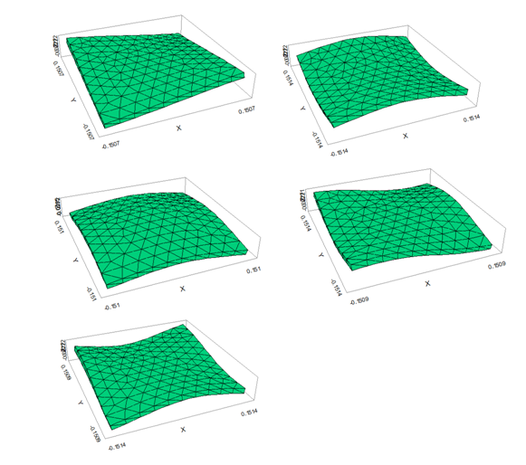 From the free body diagram in Figure 1, we can obtain the equilibrium equation. The moment equilibrium about y- and x-axes and force equilibrium about z-axes yield after neglecting higher order terms