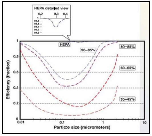 Figure 5 HEPA filter efficiency against particle size.10