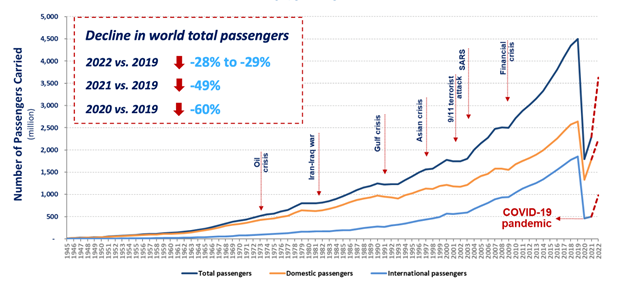 Figure 1 World passenger traffic evolution – 1945~2022.