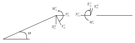 Figure 4 The positive directions for forces and moments of conical and cylindrical shells.