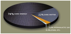 The most significant of these is the discovery that only 4-5% of the matter in the Universe is visible (observable). It is customary to call it "baryonic matter" because its structure has protons and neutrons. The rest of the matter is "hidden" (invisible). It is generally accepted that it consists of 22% of "dark matter", which forms a rotating "halo" around galaxies, and 74% of "dark" energy, which handles their accelerated recession (Figure 7). The structure of this "finer" matter does not lend itself to study by existing means, therefore we are forced to consider it a continuum. This corresponds to the division of matter in the Universe not into matter and field, but into structured (baryonic) and unstructured ("non-baryonic") parts. Non-baryonic matter has the only (gravitational) degree of freedom, and, like ether, fills all the space provided to it. Therefore, it is an indispensable part of any material system. This makes it the "primary" form of matter (pre-substance), from which in the process of "condensation" (structure formation) all known forms of baryonic matter (elementary particles, nuclei, atoms, molecules, gases, dust clouds, small and large celestial bodies, galaxies, and their clusters). It is a small fraction of baryonic matter, the emission of which has an individual spectrum that decides the low temperature of the galactic medium (2, 73 K).
