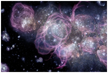 The existence of "voids" - cosmic voids of huge sizes (over a billion light years), free of baryonic matter, are confirmed by photographs (Figure 8). Energy dynamics explains them by the absence of conditions in the voids for condensation of non-baryonic matter. The density of non-baryonic matter in voids varies, according to modern data, from ~10-27 to ~10-34 g cm-3. Such in homogeneity makes it unstable and gives rise to self-oscillations of density in it. As proved in energy dynamics, the energy of these vibrations is , that is, the value currently accepted as the total energy of matter. This energy makes non-baryonic matter the "fuel" of the stars, although it is only a fraction of the energy of non-baryonic matter, which is involved in oscillatory motion.