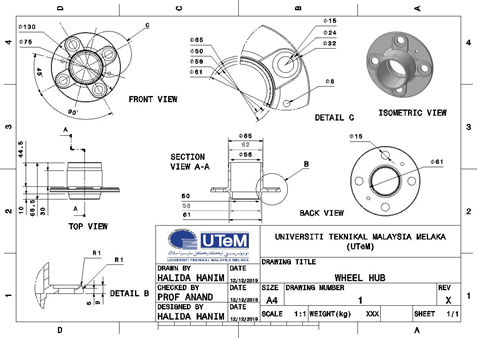 In order to perform finite element analysis, 3D modelling of the wheel hub had been done following the actual measurement of a front wheel hub using CATIA software. The detail drawing can be seen through Figures 1&2. This drawing only requires one part and does not need any assembly drawing to attach with.