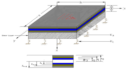 A rectangular laminated composite plate of length a, width b, and total thickness h, defined in (X, Y, Z) system with x- and -y axes located in the middle plane and its origin placed at the corner of the plate with consisting of N orthotropic layers with the fiber orientation of