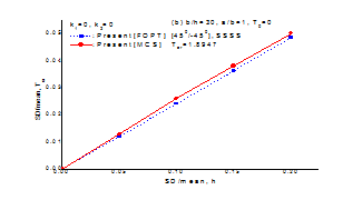 - The thermal buckling load strongly depends on the foundation parameters and increases with increase the foundation parameters. The clamp supported plates buckle at slightly higher temperature compared to other supports as mean thermal post buckling temperature is higher and COV is lower for clamped support when compared with other types of support conditions. Post buckling is more dominant in plates of (TD) thermo-material properties. The random change in input variables thickness (h) has more impact on thermal post buckling temperature scattering compared to individual random changes in material properties and thermal expansion coefficients.