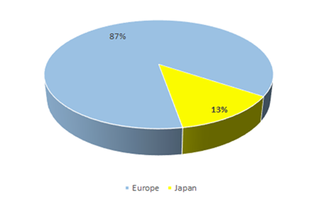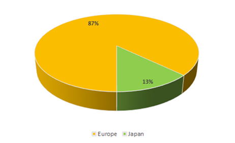 Figure 3 presents the total available seat kilometres (ASKs) that will be produced by the Thai Airbus A380 services during the 2017/2018 winter schedule period. Due to the longer stage length, the most ASKs will be produced by the A380-800 services to London and Paris. The air route from Bangkok to Frankfurt is slightly shorter than that to London and Paris, and thus, the total available seat kilometres are slightly less. As can be seen in Figure 3, the total ASKs produced on Thai’s Airbus A380-800 services from Bangkok to Osaka’s Kansai International Airport are around half of these of the services to Europe. This reflects the shorter stage length of the service. Figure 4 shows that during the 2017/2018 winter schedule period, 87 per cent of the ASKs produced by Thai Airways International fleet of six Airbus A380-800 aircraft will be generated on the airline’s services from Bangkok to Frankfurt, London and Paris, with the remaining 13 per cent being generated on the daily Airbus A380-800 services from Bangkok to Osaka’s Kansai International Airport (Figure 4).