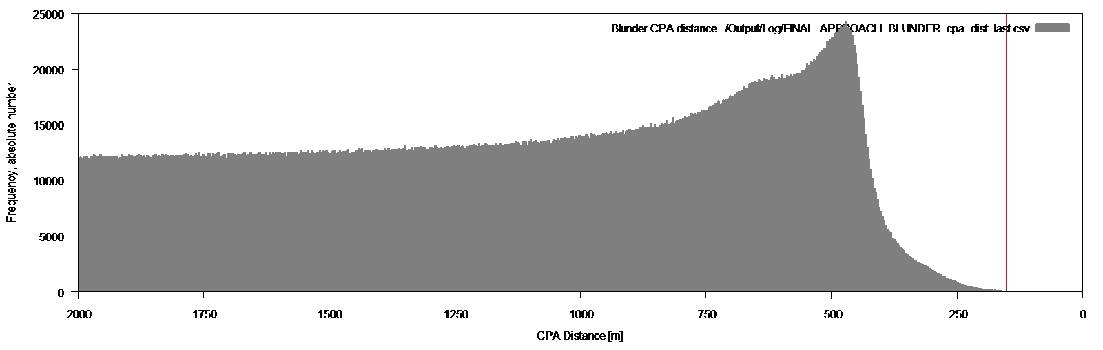 The fast-time model shows that results are comparable to those of previous simulation studies by ICAO. This is shown in the following, by running two exemplary use cases. While for intercept maneuvers there is no comparable study available, we configured the mode (final approach blunder, nuisance breakout and aircraft behavior modules) to be comparable with historical studies. Hence, we expect the model to remain valid and to deliver results that are directly comparable with the ‘classic’ baseline.
