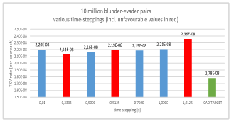 Figure 9 Reduced influence of time stepping (simulation update period) on resulting TCV rate, with comparison to published value in ICAO SOIR.15
