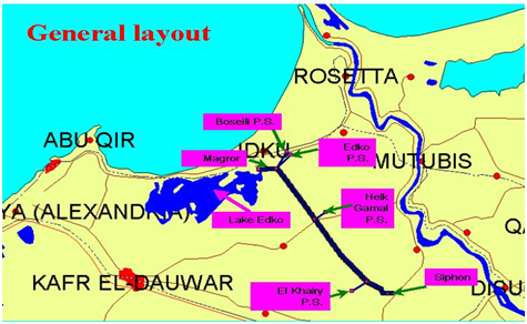 During the winter season the seawater tidal levels are high and unfortunately this coincides with the period of maximum flows from the pump stations to Edko drain. The rise in the downstream boundary sea level reduces the flow from the lake to the sea with the consequent backwater effect along the lake up to the drain. Thus a significant rise occurs in water levels in Edko lake and drain. The rise in water levels in Edko-drain causes flow overtopping of the banks that inundates the surrounding agricultural lands. The rise also forces many pump stations to stop their flow causing further flooding problems to the areas served by these stations. It is required to find a solution to this flooding problem which does not affect the salinity of the lake.