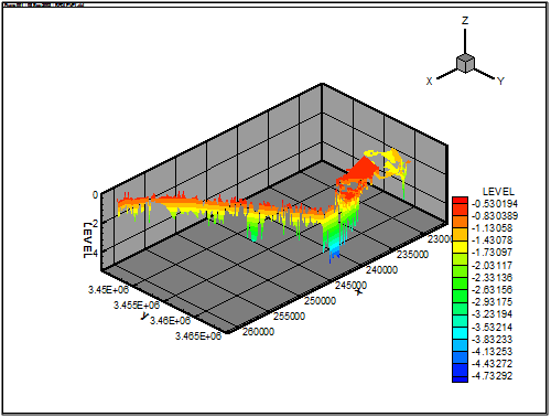 The unsteady nature of the flows is clear in Figure 6 for the net flow in Edko Drain on May 17/2003. The data for the bed levels interpolated by the model from the existing measurements is displayed in Figure 7. The left bank levels along Edko drain and Magror are lower than the right bank levels. For example the left and right bank levels at Edko pumping station are 0.85m and 1.5m, respectively. Evaporation was taken as 5mm/day and seepage was neglected according to recommendations made by Drainage Institute’s engineers.