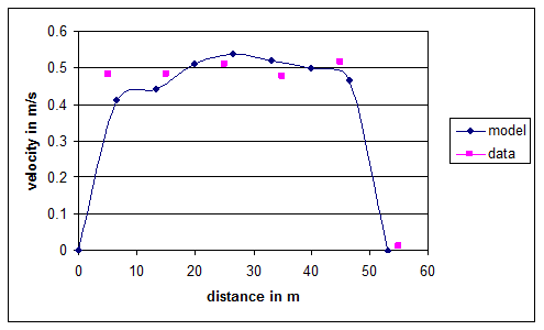 Figures 9 & 10 confirm the success of the developed model in predicting the velocity field across the width of the Bougaz end section in both cases of inflow to and outflow from Lake Edko. The flow discharges in Table 2 were obtained through integrating the velocities in Figures 9 & 10 across the Bougaz channel width.