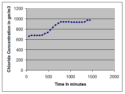 The Chloride concentration shown in Figure 14 indicates that little changes (about 200gm/m3) occurred in the lake’s average Cl concentration as compared to that in May 17 2003 and still away from being affected by the sea salinity (Chloride) level.
