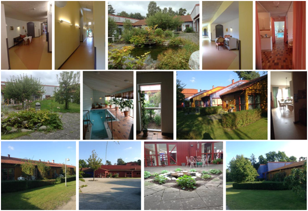 The research material was assembled through open and structured interviews with representatives of the RCH-V, care staff members, older residents and their relatives, study visits to the RCH-V and other RCHs, literature reviews, participations in annual colloquiums at the RCH-V and comparative analyses of other RCHs4,5,8,12-17 In 2013, the Vårdalsinstitutet at the Lund University, Sweden organized a specially designed higher education course that targeted retiring professionals under the supervision of professor Ema Bodil Jönsson. The project was sponsored by the Swedish Association of Local Authorities and Regions, SALAR. A group of 20 experienced persons from various organizations that are involved in the planning, realization and tendering processes, which Swedish elder care regularly generates, were recruited. Ms. Husberg, the architect and manager of the RCH-V, was also accepted as a student. The curriculum counted lectures, seminars and scientific literature studies, and the course ended with an individual assignment. This assignment involved writing a scientific paper on previous experiences of elder care, and each student were assigned an individual supervisor. The author of this study supervised Ms. Husberg’s work entitled 'Vigs Ängar - housing and living’.4 These discussions proved essential for unravelling the primary generators behind the RCH-V and Ms. Husberg’s professional approach as an architect and gerontologist to harmonize ephemeral existential values in dependent aging and care giving for frail older people with aesthetical, constructional and rational motives for the architectural design of this built space.