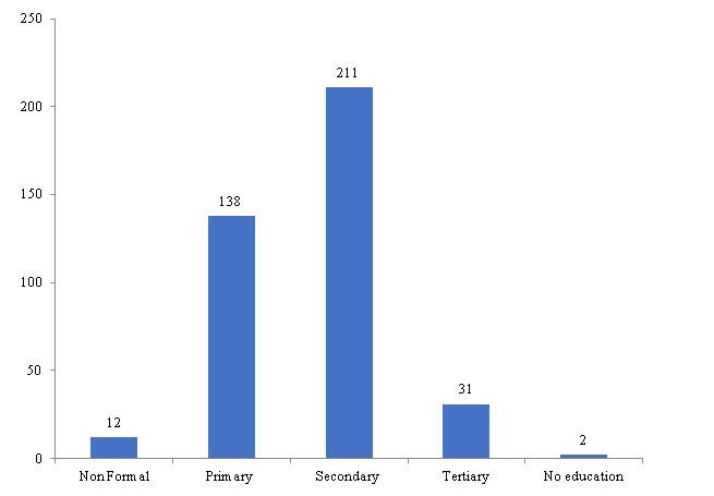 In administrating the questionnaire, quota system was used. The LGA’s were given questionnaires based on their percentage contribution to the total population. Okobo was given 32.25% (129) of the questionnaires, Uruan was given 42.11% (168) and Nsit Atai was given 25.6% (103) of the questionnaires respectively. A systematic sampling technique was employed in selecting households to be sampled.