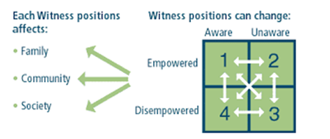 Compassionate witnessing is not an individualistic response. In a more recent article, Weingarten18 describes the social and relational processes that influence our witnessing positions: Any of us may experience any of the four positions as one only we are responsible for having made happen, as if the position is independent of the social and relational processes that, in fact, “put” us there. These positions are not individual achievements but arise within the same discursive constraints that impact any other of our social locations.18